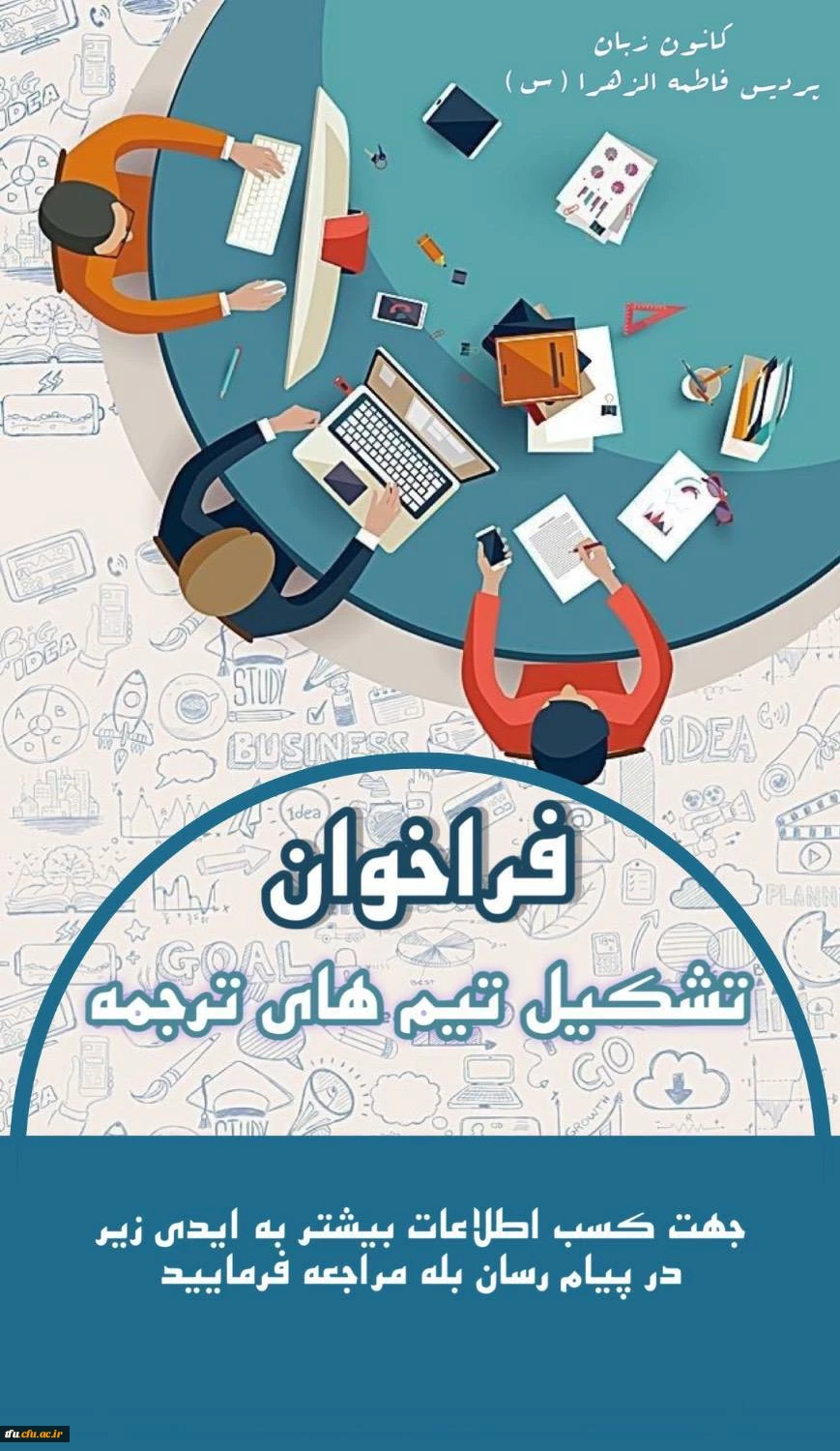 امتیاز دهید : فراخوان تیم های ترجمه کانون زبان انگلیسی پردیس فاطمه الزهرا 2 یکشنبه 13 اسفند 1402 ساعت 11:24