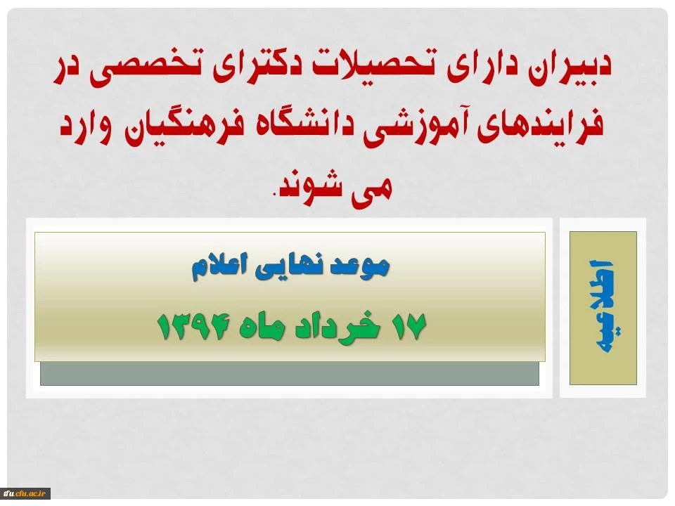 دبیران دارای تحصیلات دکترای تخصصی در فرایندهای آموزشی دانشگاه فرهنگیان وارد می شوند. 4