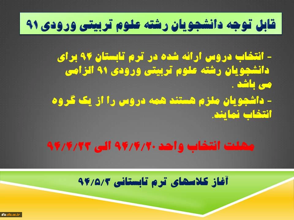 اطلاعیه قابل توجه دانشجویان رشته علوم تربیتی ورودی 91 2