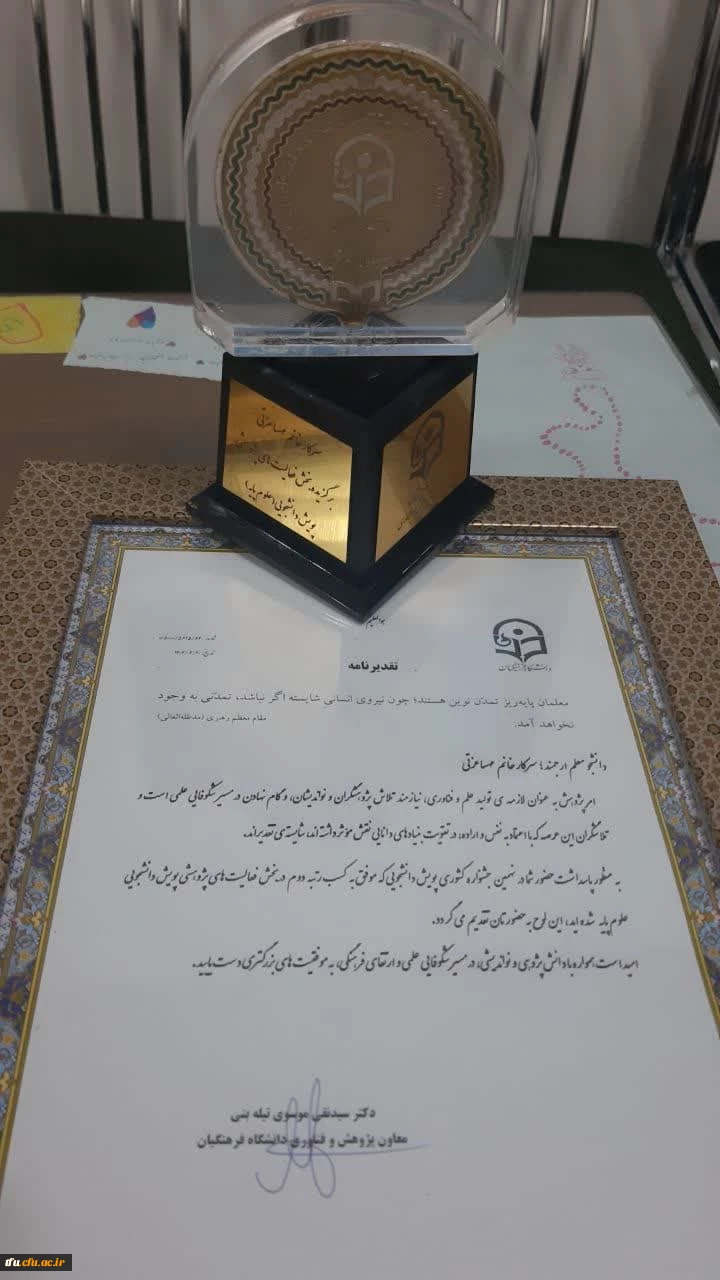 درخشش دانشجو معلم پردیس فاطمه الزهرا (س) تبریز در جشنواره ملی پژوهش های دانشجویی پویش سال 1404 2