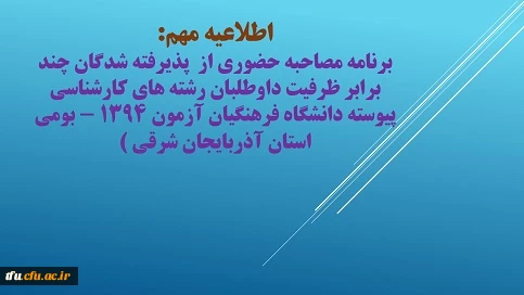 امتیاز دهید : زمان بندی مصاحیه قبولین چند برابر ظرفیت پردیس فاطمه الزهرا یکشنبه 25 مرداد 1394 ساعت 11:45