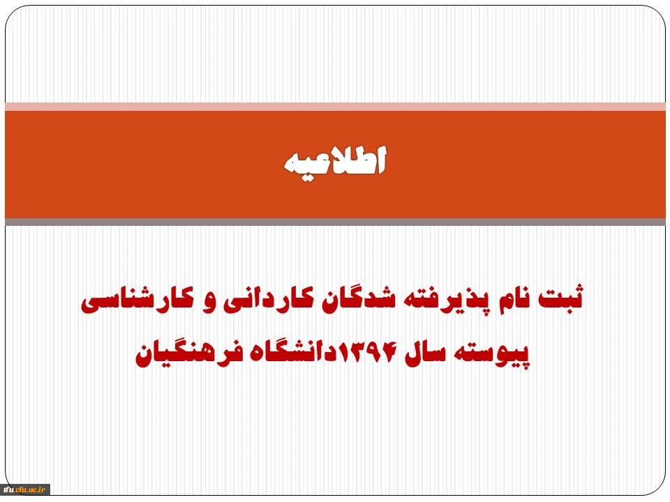 اطلاعیه ثبت نام پذیرفته شدگان کاردانی و کارشناسی پیوسته سال 1394دانشگاه فرهنگیان 2